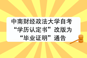 中南财经政法大学自考 学历认定书改版为毕业证明通告已发布!一起来看看关于自学考试新的要求吧! 为积极推进我省自学考试云服务,实现考生零跑腿,经研究决定,将自学考试学历认定书改版为毕业证明,实行一站式网......