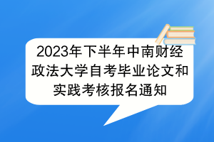 中南财经政法大学自考 毕业生们注意啦!2023年下半年中南财经政法大学自考毕业论文和实践考核报名通知已发布!一起来看看具体要求吧! 根据湖北省教育考试院自学考试工作安排,现将中南财经政法大学自考202......