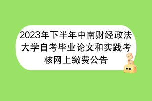 2023年下半年 中南财经政法大学自考 毕业论文和实践考核网上缴费公告已发布!已申请毕业并报名本次毕业论文和实践考核的同学来一起看看具体的缴费流程吧! 2023年下半年毕业论文和实践考核报名工作已于6......