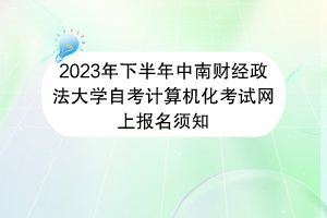 2023年下半年 中南财经政法大学自考 计算机化考试网上报名须知已发布!计算机化考试分为计算机应用基础(实践)(00019课程)考试和计算机应用基础(00018、00019课程合卷)考试,为确保报名工......