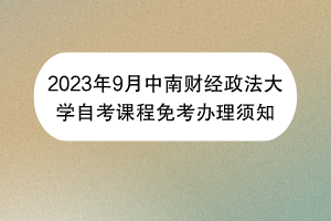2023年9月 中南财经政法大学自考 课程免考办理须知已发布!中南财经政法大学自考课程免考是指自考生根据有关规定,可以申请免考已学过并考试成绩合格的有关课程。这对于考生来说,是可以大大节省拿到毕业证的......