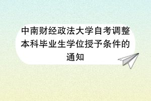 中南财经政法大学自考 调整本科毕业生学位授予条件的通知已公布!想要申请该校自考学位证的考生注意啦!需要以最新的通知和要求为准哦! 经学校研究决定调整高等学历继续教育(自学考试)本科毕业生学位授予条件,......