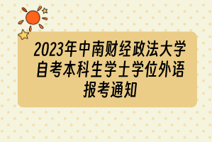 中南财经政法大学自考本科生看这里!2023年 中南财经政法大学自考 本科生学士学位外语报考通知已经在今天发布了,大家需要在规定时间报名及缴费,详情如下: 一、报名对象及条件 1.成教生:已修完本科阶段......