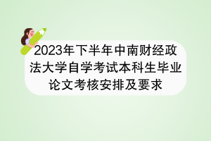以上就是2023年下半年中南财经政法大学自考本科生毕业论文考核安排及要求的全部内容了,大家清楚了吗?相关同学需要注意时间和具体要求哦!