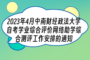 以上就是2023年4月中南财经政法大学自考学业综合评价网络助学综合测评工作安排的通知了,考生们注意考试时间和流程以及注意事项哦!